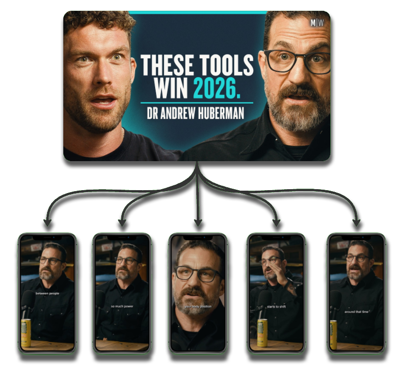 They use our system to turn each video into multiple high-retention Shorts — increasing distribution without filming more.
